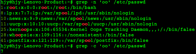 -c统计查找到字符串的次数-i忽略大小写-n显示查找字符串的行号-v反向选择-Epattern中可以用扩展的正则表达式