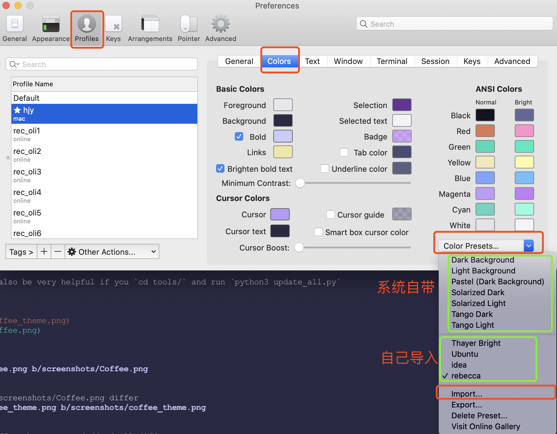 1# 拉取终端配色仓库 2git clone https://github.com/mbadolato/iTerm2-Color-Schemes.git --depth=1 -