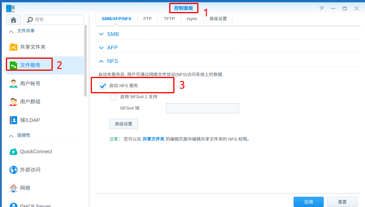 NAS 开启 NFS