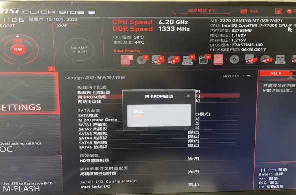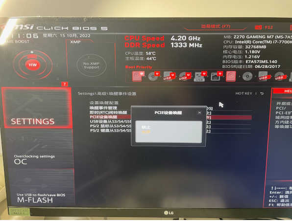我的主板是微星 Z270 GAMING M7,网卡是 Killer E2500 Gigabit。该主板开启网络唤醒功能需要通过开机过程中,长按 DELETE 键进入 BIOS 进行如下设置: